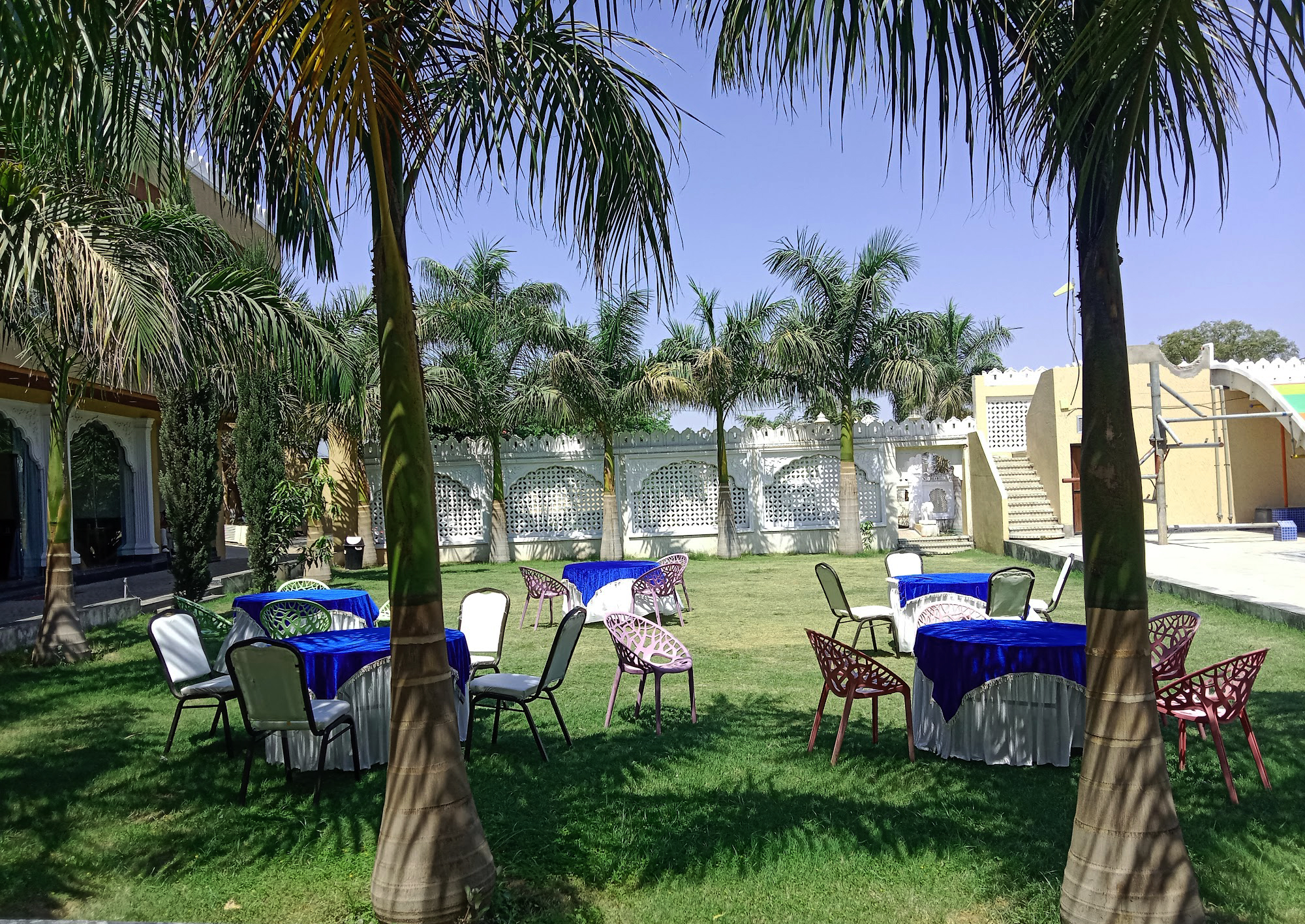 Unwind in our expansive, beautifully landscaped garden—perfect for events or leisure. A serene escape in the heart of Chittorgarh.